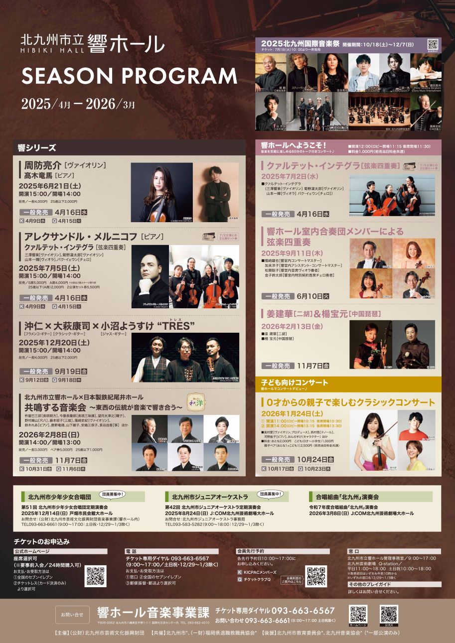 【3/27更新】2025年度 響ホール主催コンサート全ラインナップ公開!