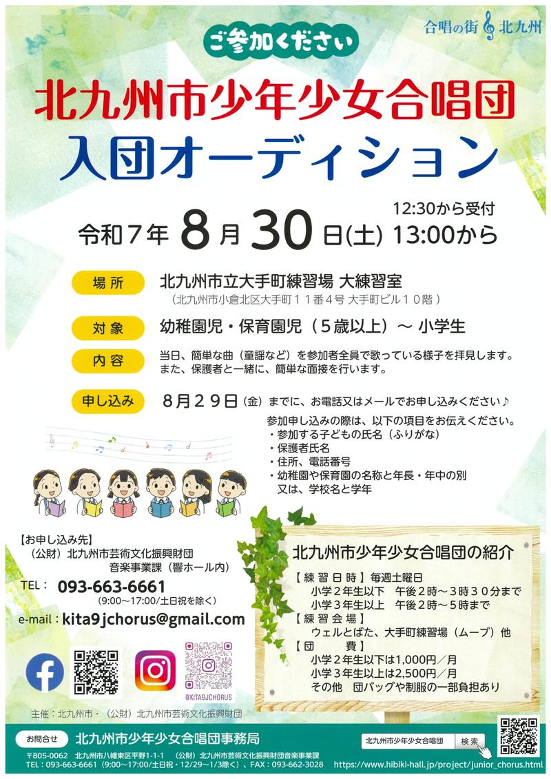 北九州市少年少女合唱団では、一緒にうたってくれる仲間を募集しています。