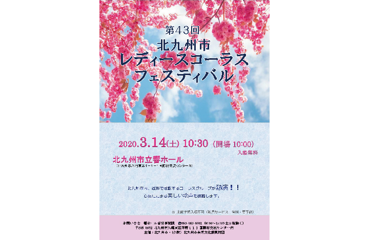 これに伴い、3/14(土)に開催を予定していました「第43回北九州市レディースコーラスフェスティバル」につきましては、観客の皆様及び出演者の皆様の健康と安全を第一に考え、中止することといたしました。