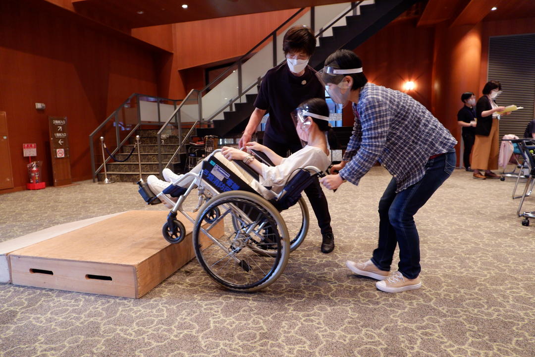 視覚障害や車いすユーザーのお客様に対してのサポート方法を講座と実技で学びます。