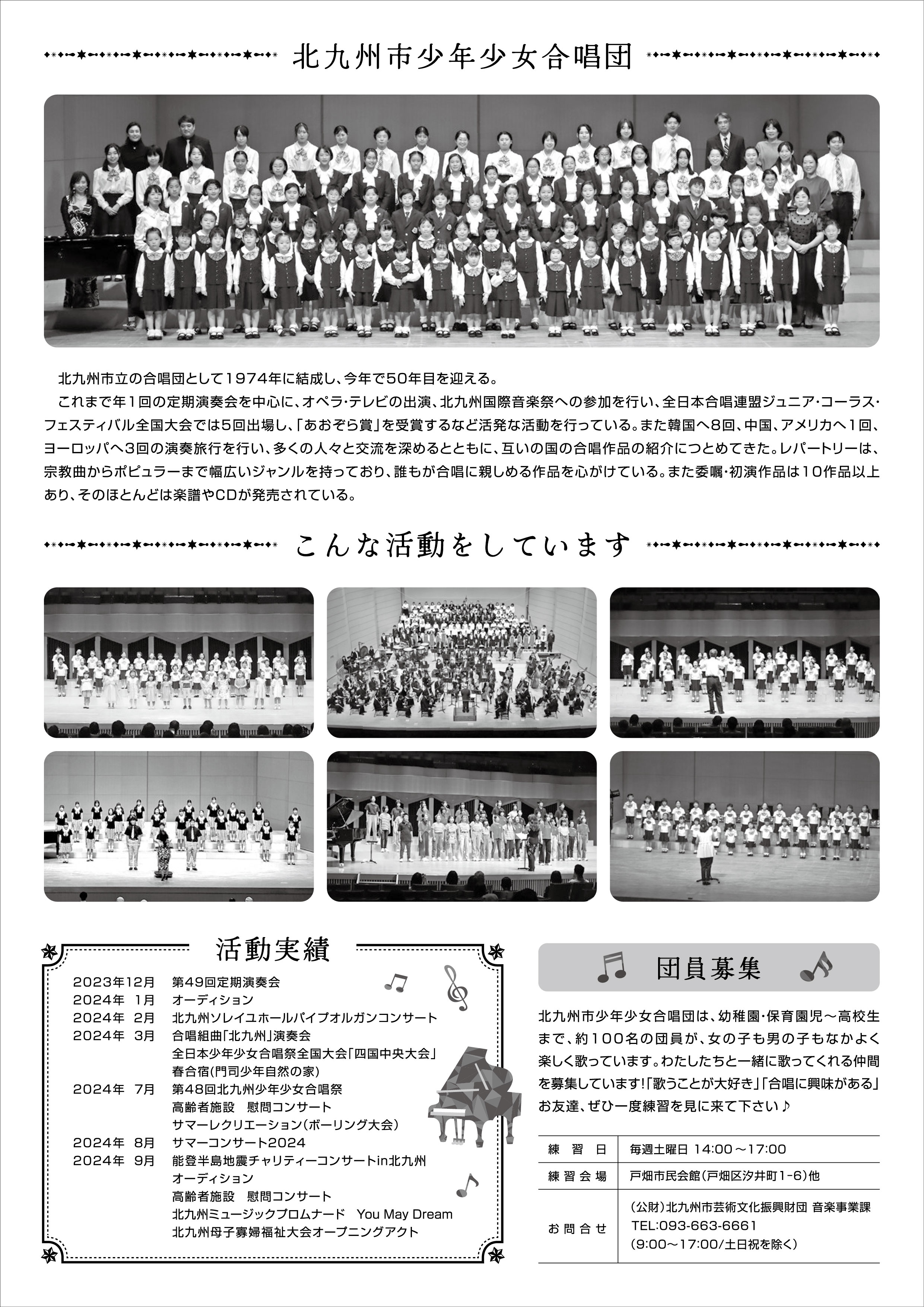 主催:北九州市少年少女合唱団、北九州市、(公財)北九州市芸術文化振興財団