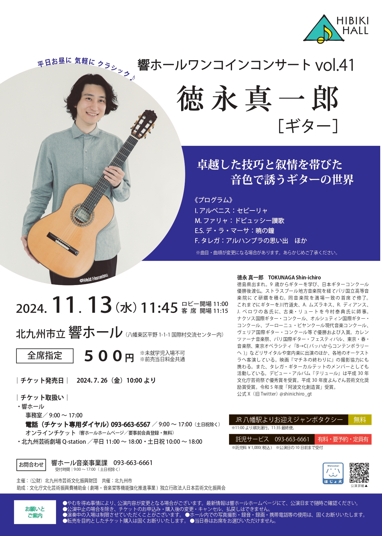 2024年度第3弾は、数々の国内外コンクールを制してきた注目のギタリスト、徳永真一郎が登場します。