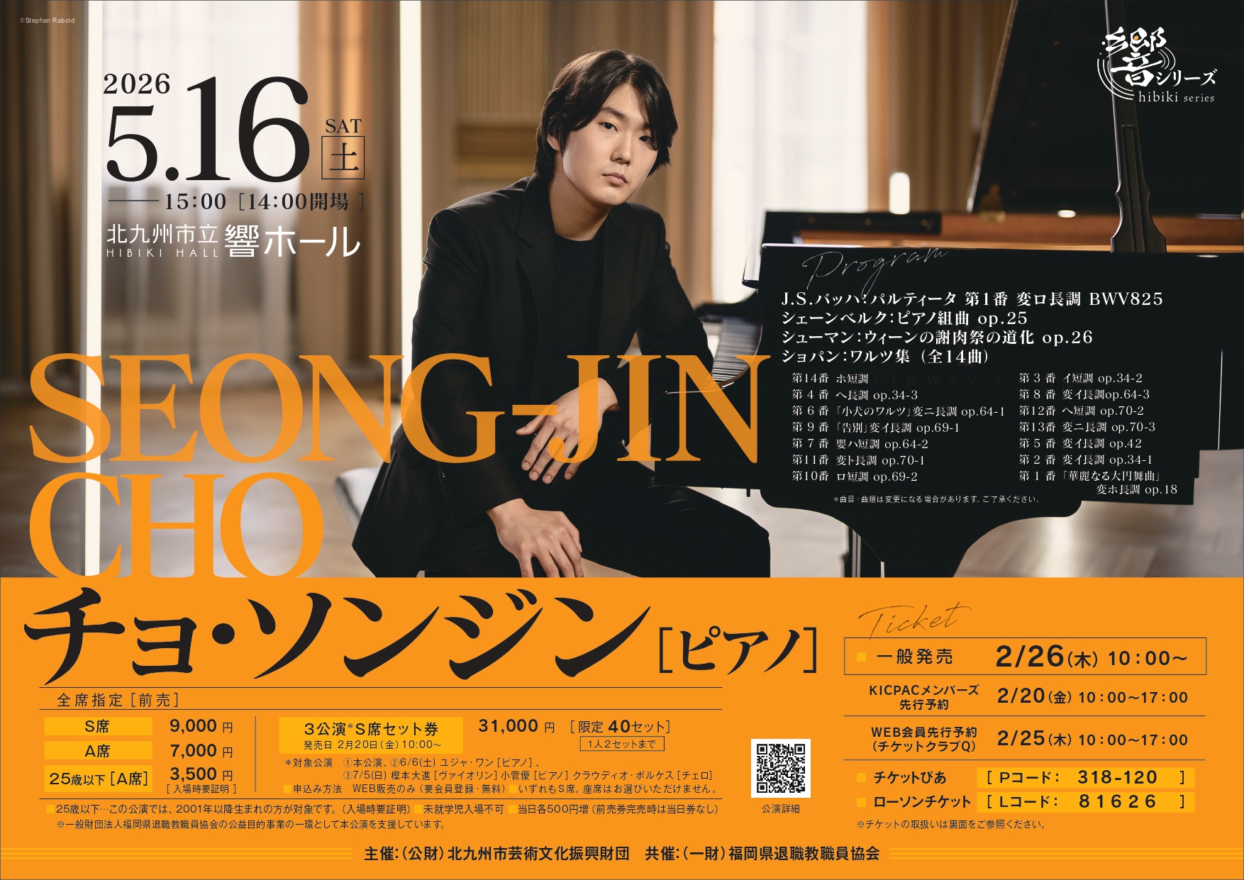 ※5/16チョ・ソンジン公演、7/5樫本・小菅・ボルケス ピアノ・トリオ公演はいずれか1公演のみお申込みいただけます。ご注意ください。